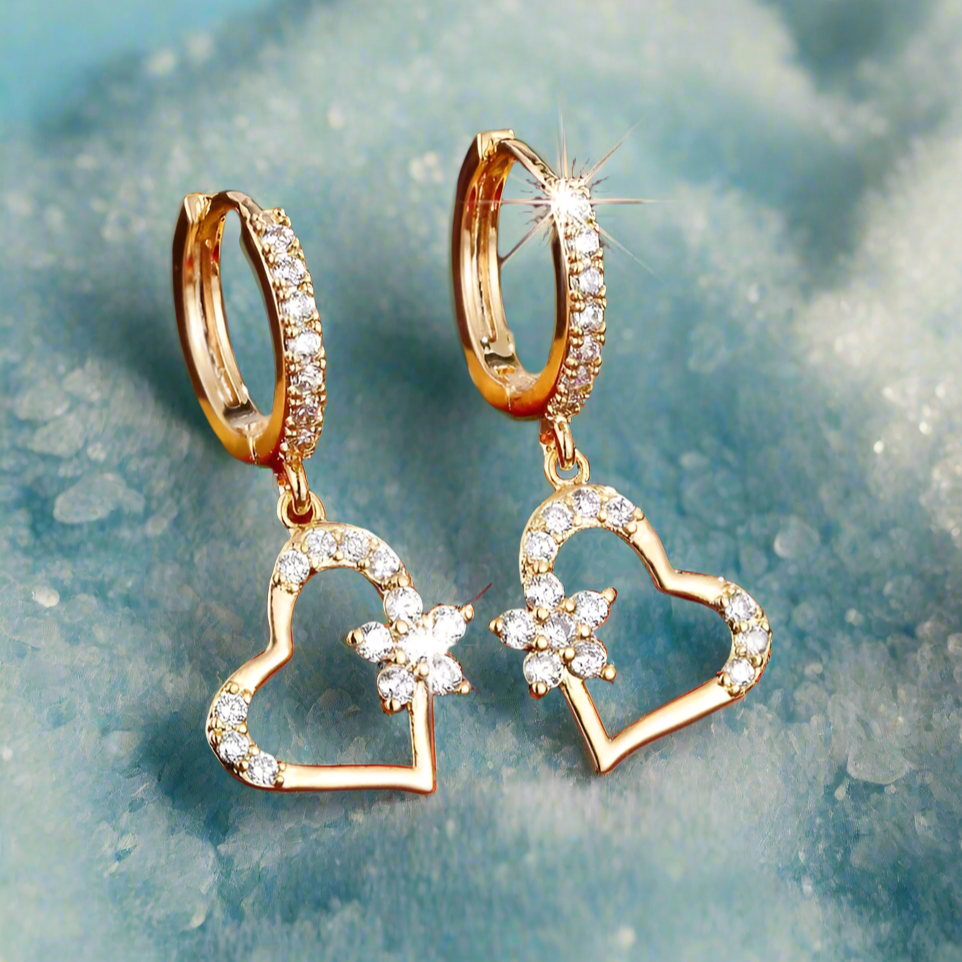 Our sparkling Brilliant Heart Earrings are accented with a generous bouquet of reflective cubic zirconia. The earrings make a beautiful and tasteful statement! They are one piece, so no worry about keeping track of or losing small parts! Lightweight so they won't stretch delicate lobes. Delivered in perfect gift box. She'll love them!