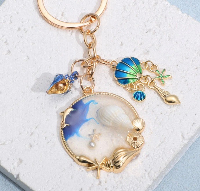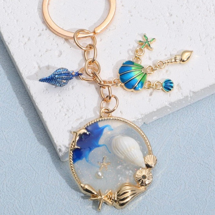 Shellebrate every day with your Shellebration Keychain! No matter where you are, a mere glimpse of the scene in the bubble with sweet shell charms dangling from a short gold-colored chain will remind you that your heart belongs with the sea. This keychain is lightweight.