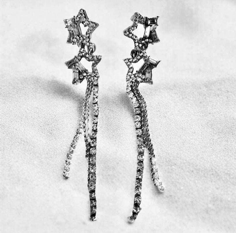 Each sparkly, silver Star Drop Earring features double stars garnished with pretty rhinestones, with reflective tendrils dangling from them to catch the light. Delivered in perfect gift packaging.