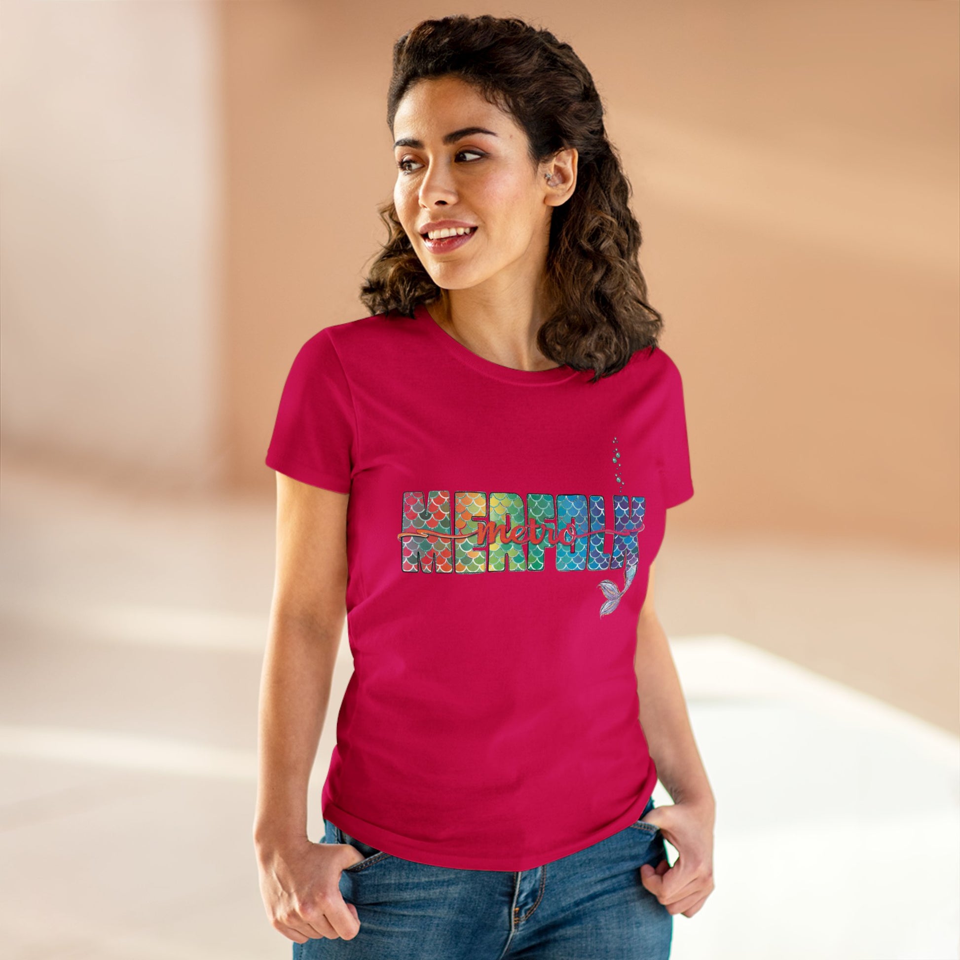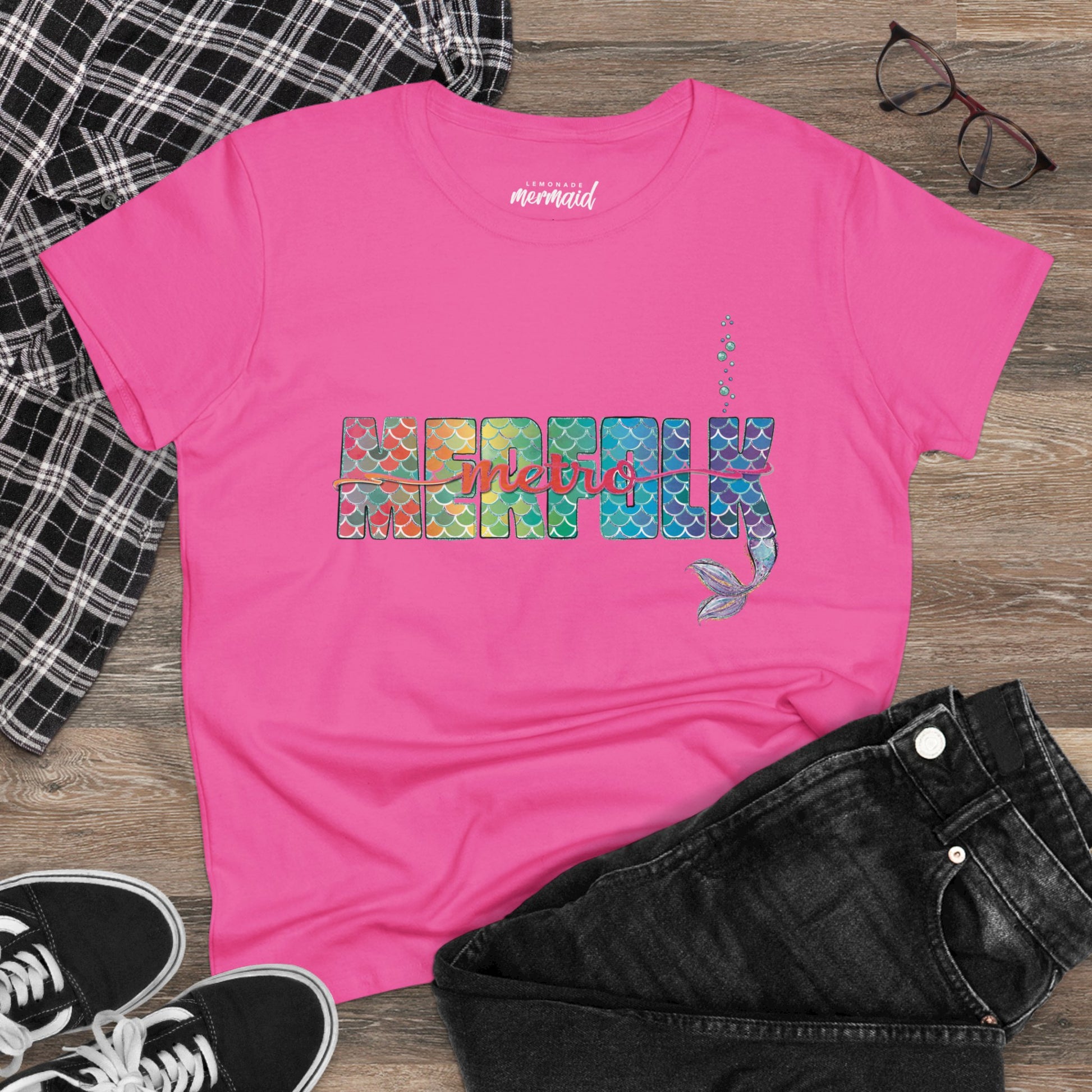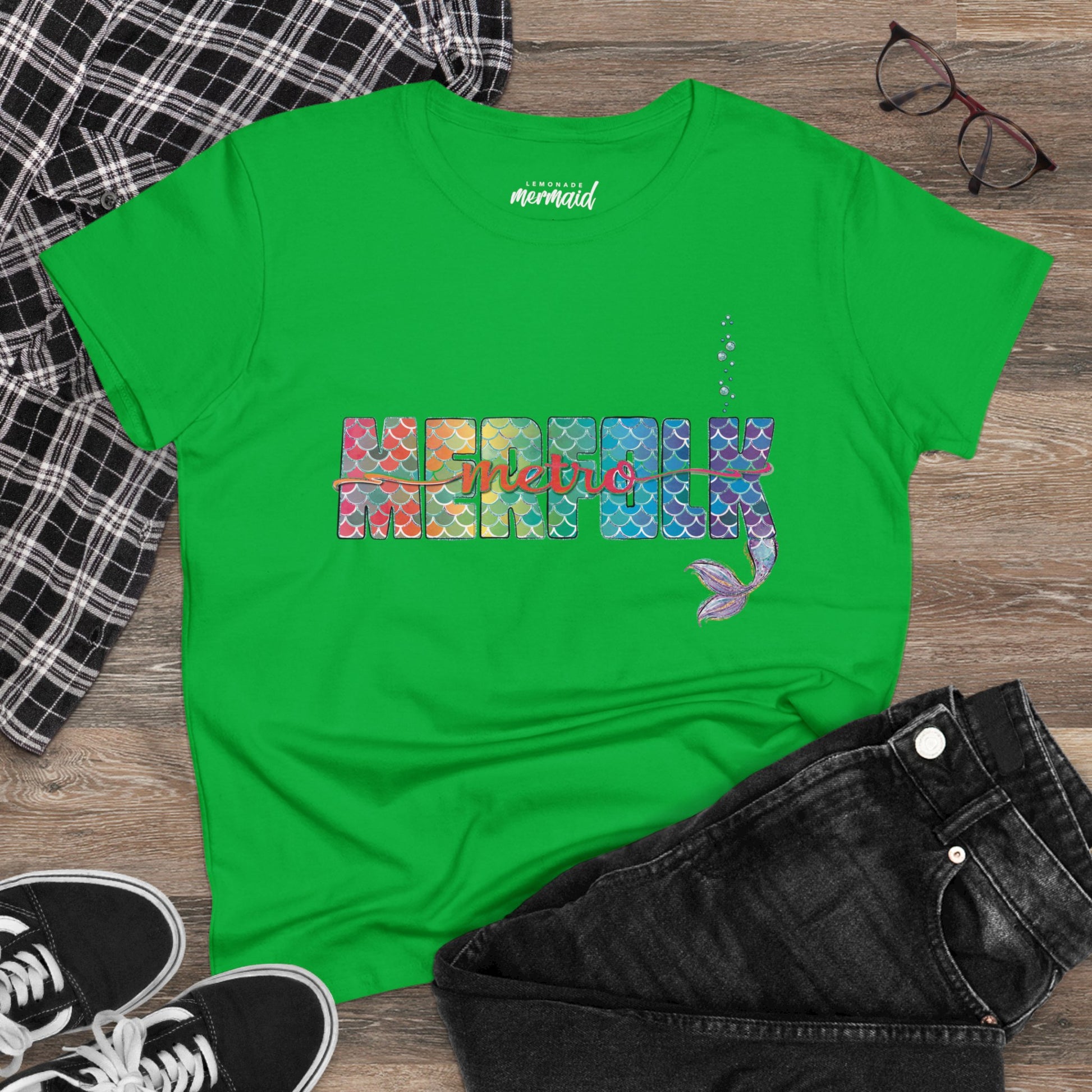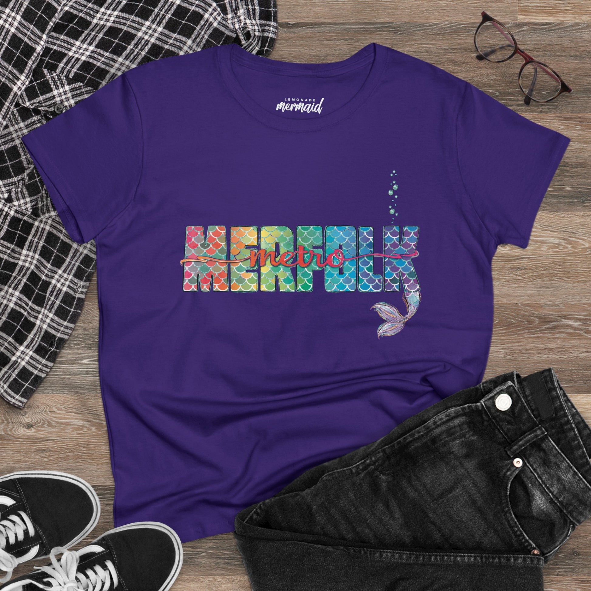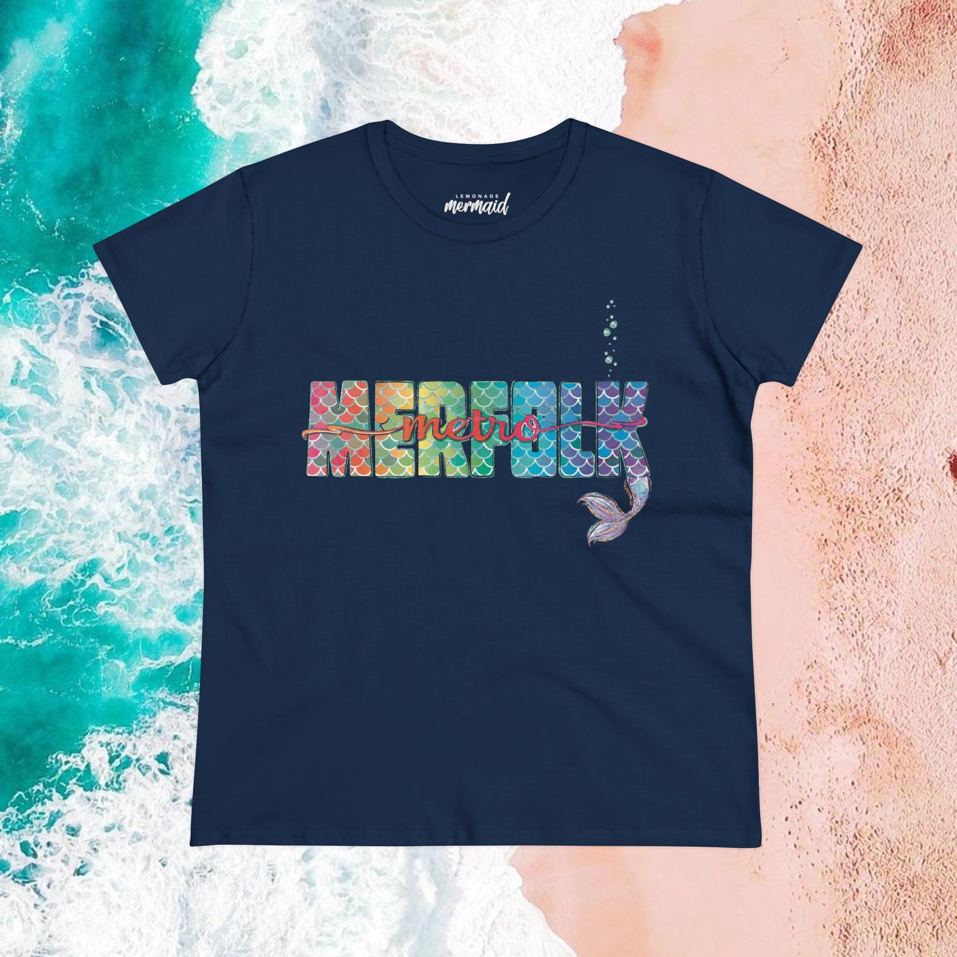 Rep the largest mermaid pod in the DMV with this Metro Merfolk semi-fitted graphic tee! Metro Merfolk is a pod of professional and hobbiest mermaids who meet up for swims, classes, and events. Everyone is welcome to join, even if you're brand new. Want to learn more? Check out www.metromerfolk.com