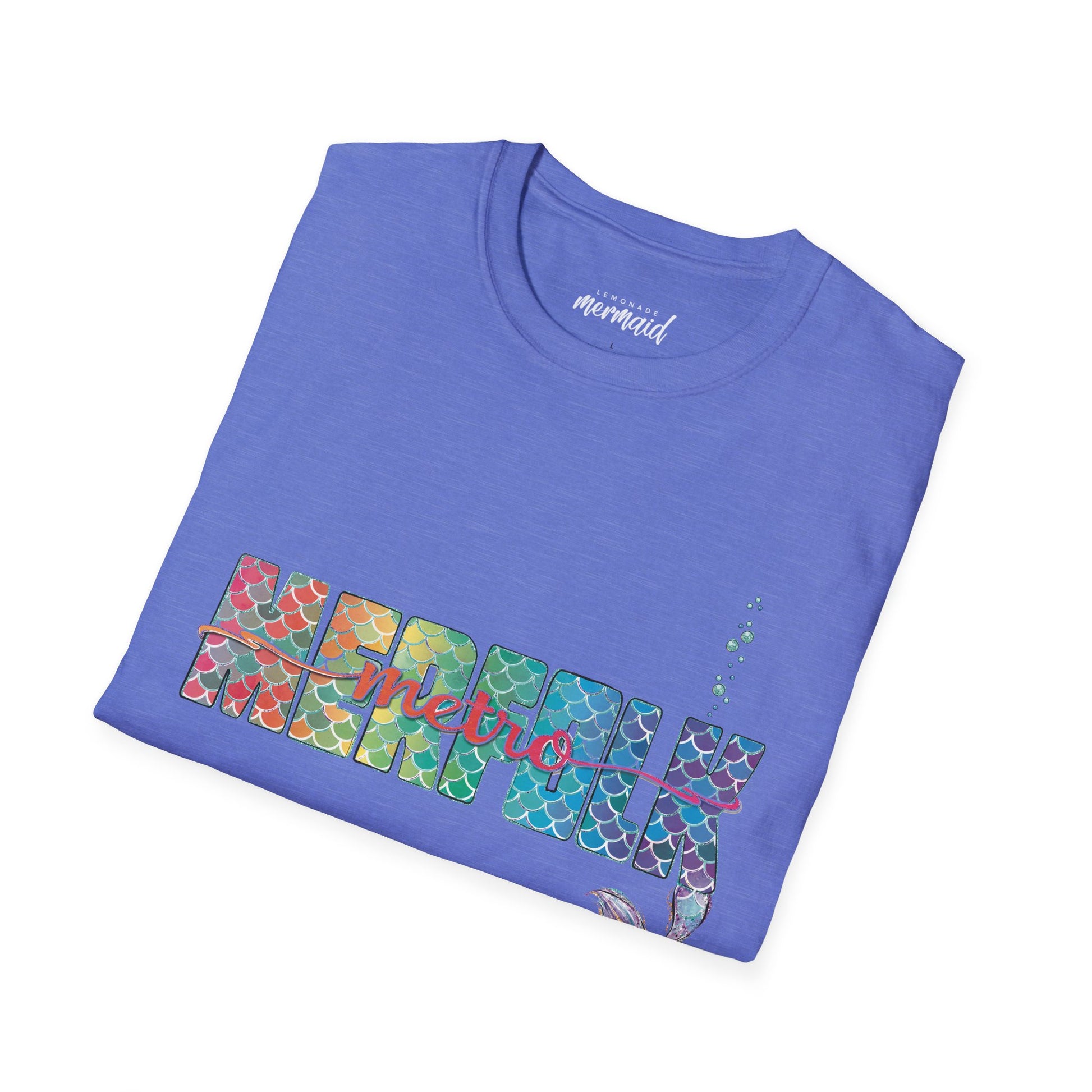 Rep the largest mermaid pod in the DMV with this Metro Merfolk unisex tee! Metro Merfolk is a pod of professional and hobbiest mermaids who meet up for swims, classes, and events. Everyone is welcome to join, even if you're brand new. Want to learn more? Check out www.metromerfolk.com