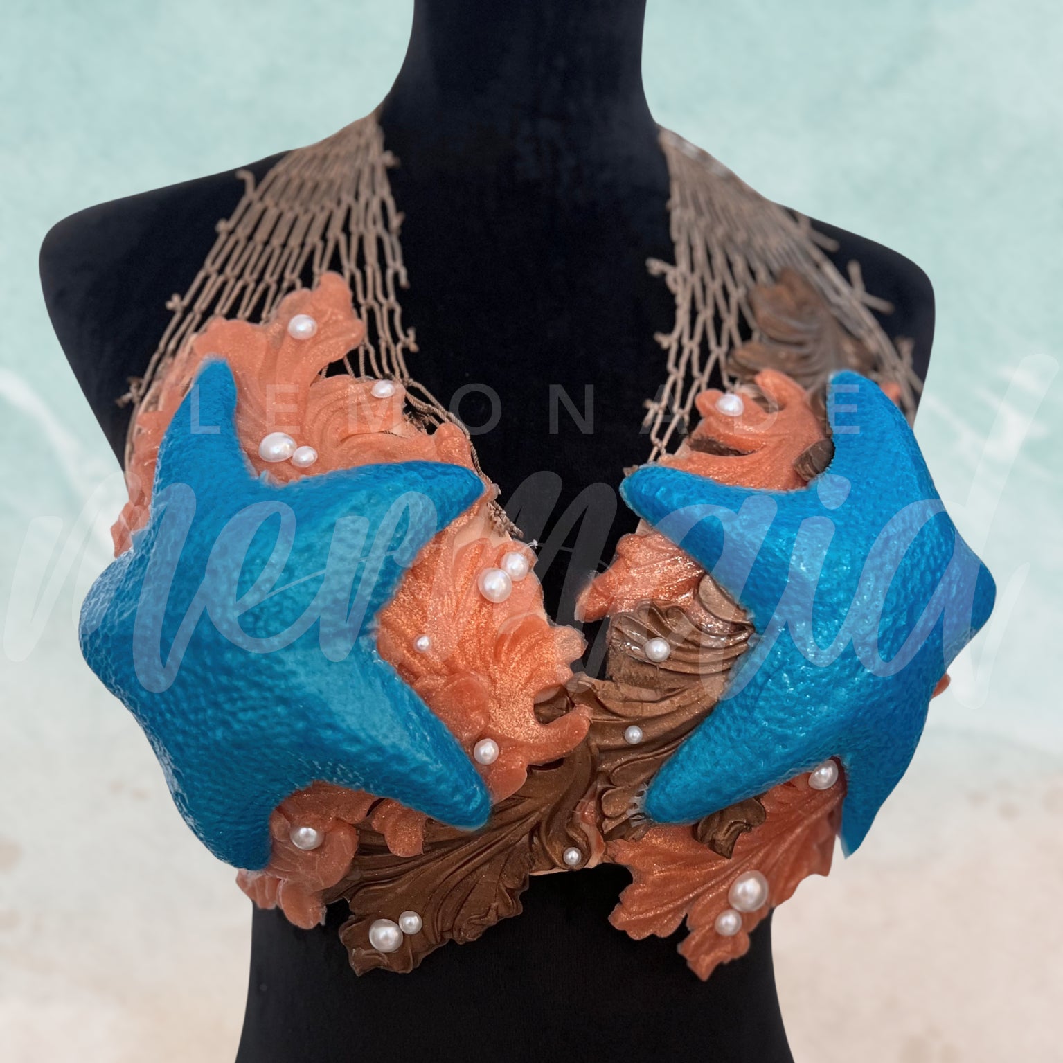 Starfish: Bra base, two Starfish shells, Seaweed leaves around the perimeters of the shells. Top comes with original bra straps.