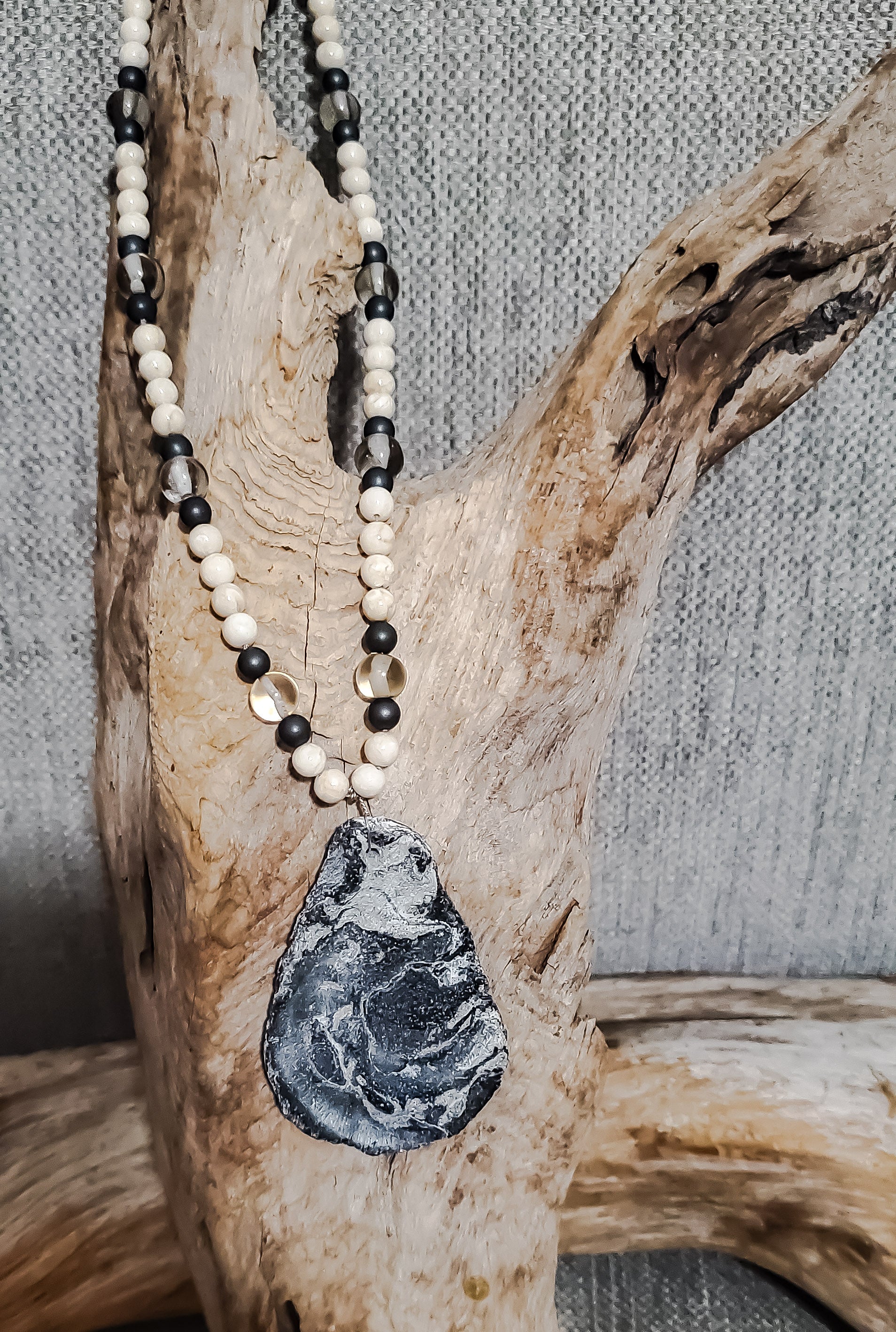 A one-of-a-kind piece made with repurposed vintage beads and a natural seashell pendant. Earthy, beachy, and effortlessly boho—perfect for adding a touch of coastal charm to any outfit