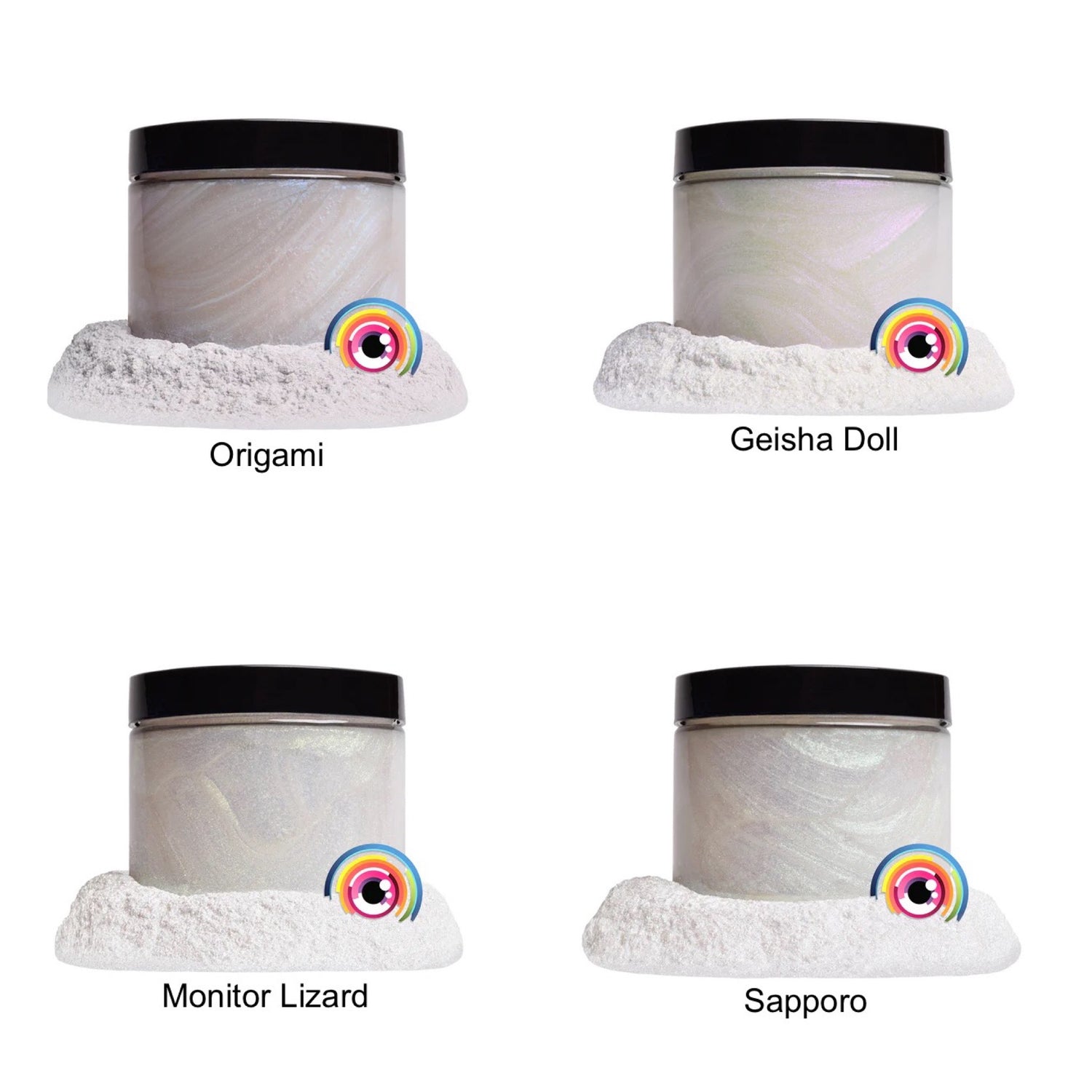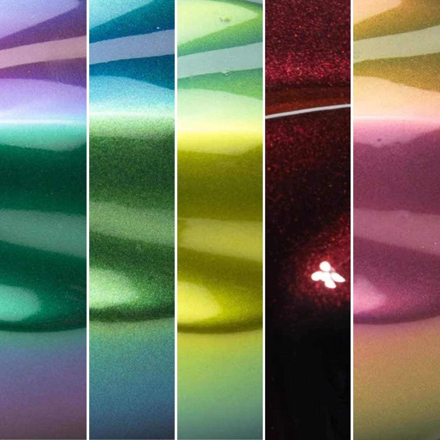 These pigments reflect a variety of colors depending on the angle of the light, and texture of the silicone.